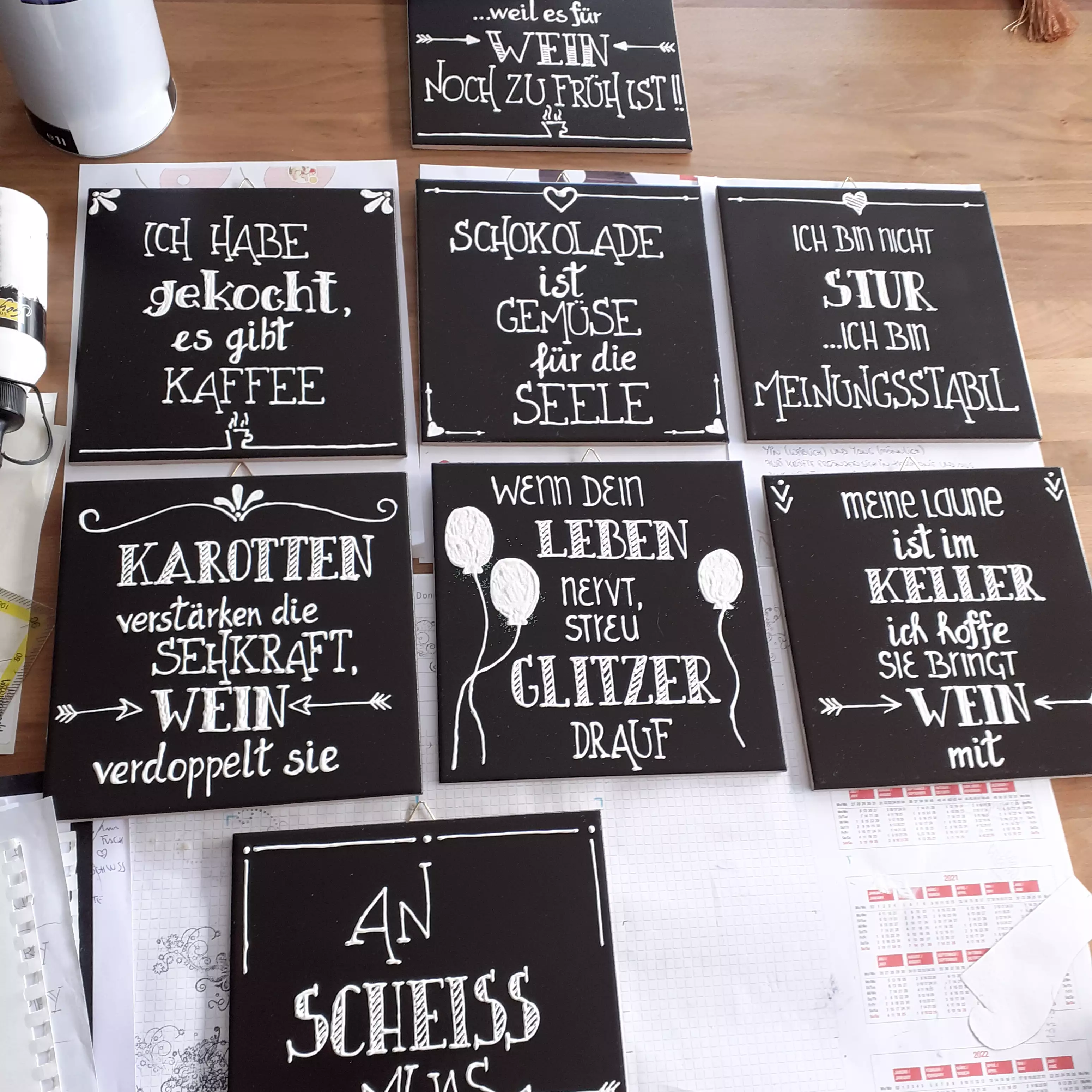 Egal, ob Sie einen Dekoartikel für Ihre Wohnung benötigen, auf der Suche nach einem besonderen Geschenk sind oder ein Faible für das Einzigartige und Besondere haben, bei mir findet jeder sein Wunschobjekt. Bei „Handgmacht“ finden Sie (fast) alles, nur keine Massenware. Da ich alle meine Tassen und Spruchbilder selbst gestalte, kann ich ohne Aufpreis auf Ihre individuellen Wünsche eingehen.