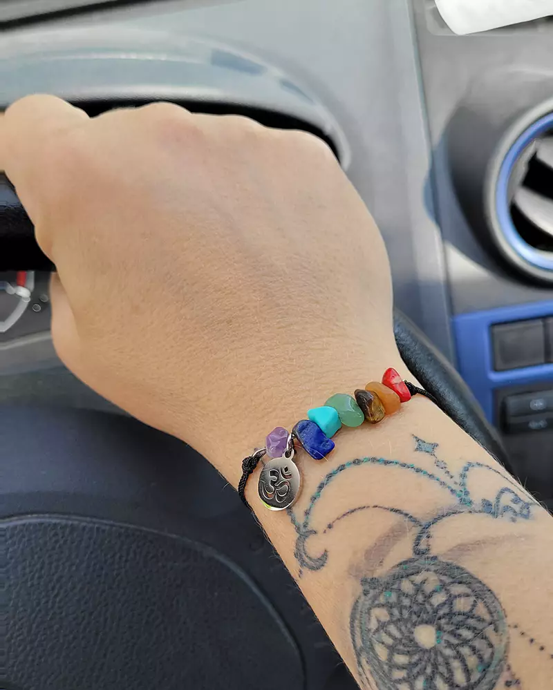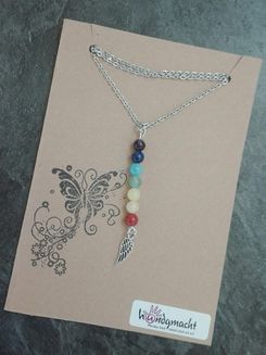 Die Edelsteine der 7 Chakren symbolisieren die Energiezentren unseres feinstofflichen Körpers, wobei jedem Chakra ein eigener Wirkungsbereich zugeordnet wird, der sich auf unsere körperliche und geistige Verfassung auswirkt. Die Chakren bringen uns also gleichsam wieder ins Lot.
