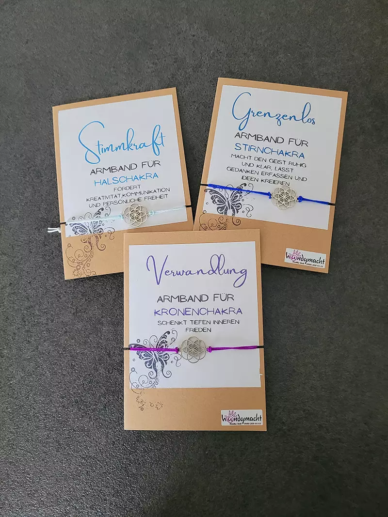In meinem Shop können Sie Halsketten, Creolen, Armbänder, Ohrringe und Schlüsselanhänger aus Edelstahl und Halbedelsteinen in den Chakra-Farben zur Chakren-Aktivierung erwerben. Außerdem veredel ich Lebensblumen und Lebensbäume sowie Traumfänger. Tauchen Sie ein in die faszinierende Welt des Schmucks und begeben Sie sich auf eine Reise durch die Welt der Chakren!