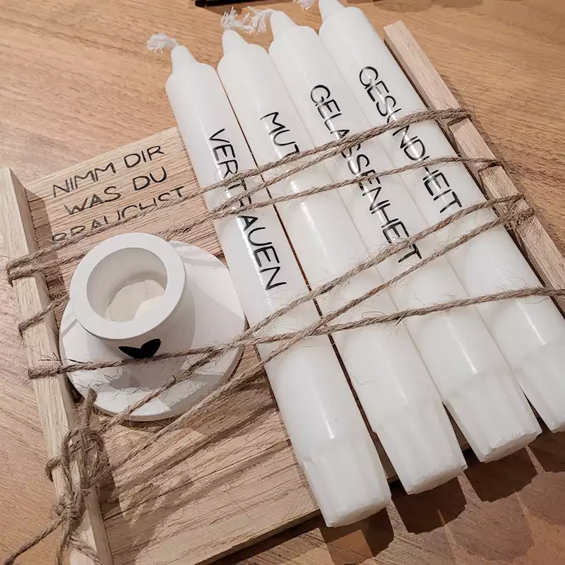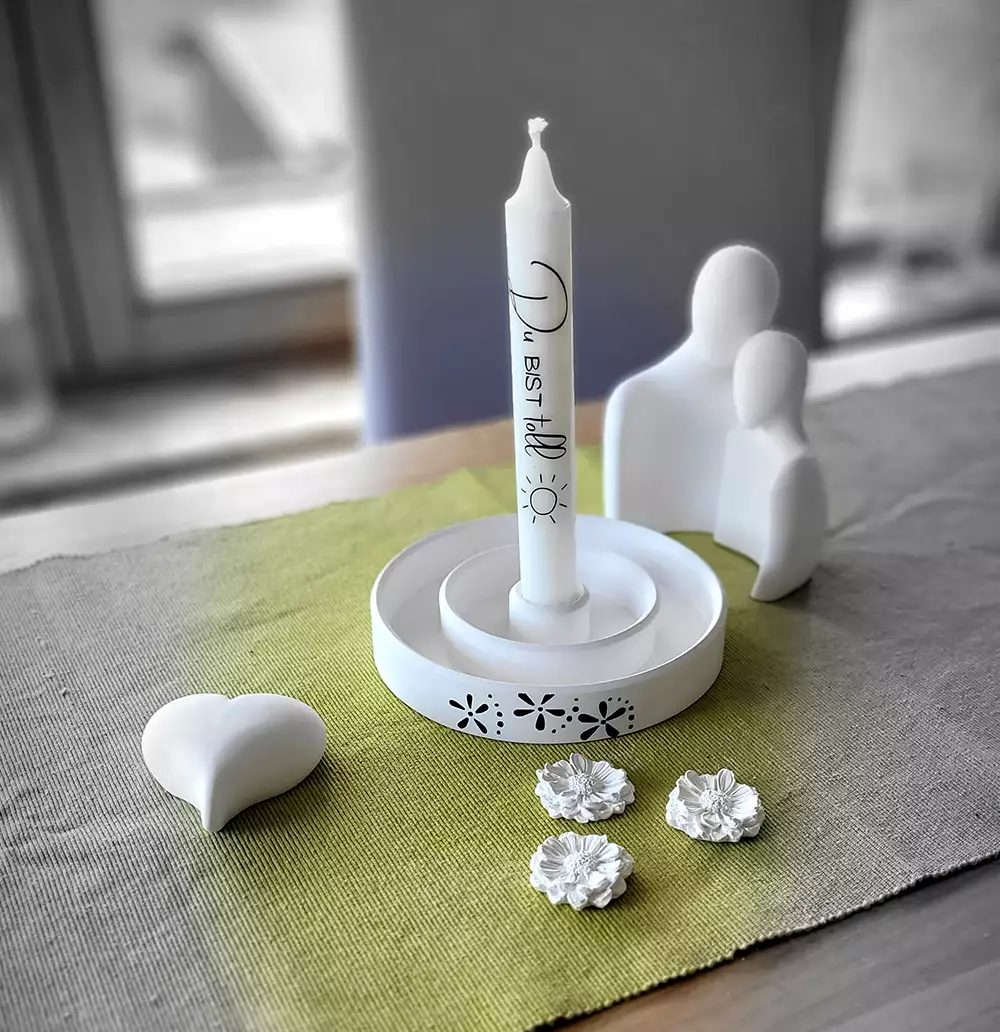 Figuren, Teller, Wichtel, Kerzenständer und noch vieles mehr, aus Giessmasse. Dezent in Form und Farbe und trotzdem ein wahrer Hingucker für den Innenbereich. Selbstverständlich habe ich auch die passenden Tafelkerzen zu den Kerzentellern in meinem Sortiment.