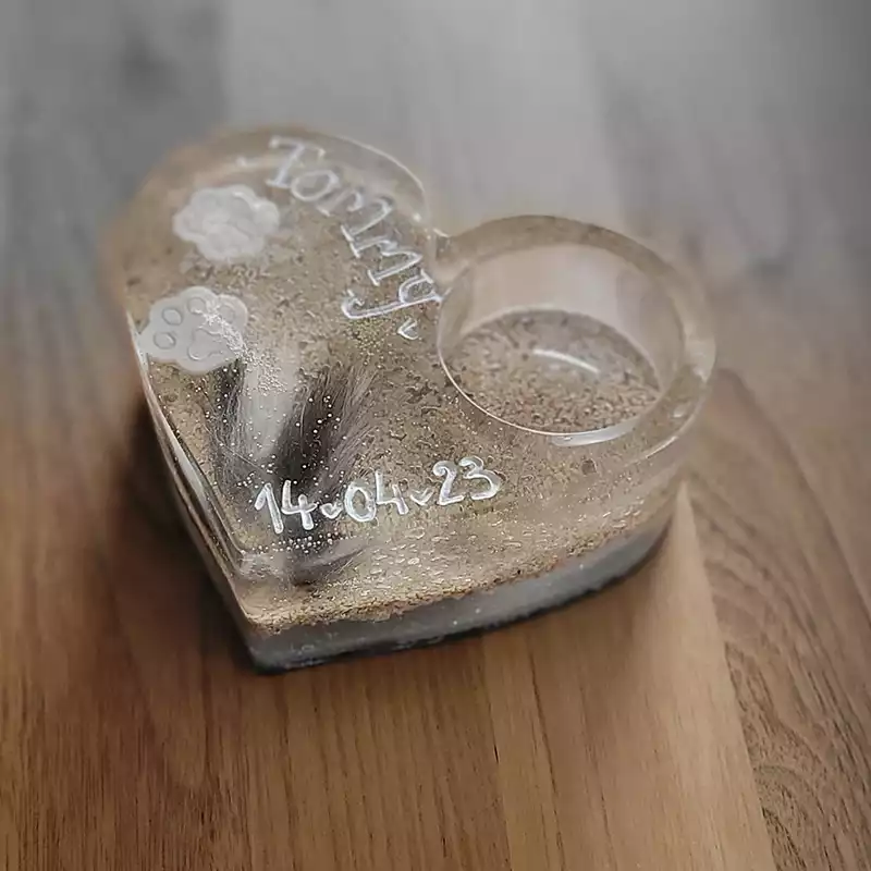 Auch Tierhaare können mitverarbeitet werden. Dadurch entsteht eine sehr persönliche und bleibende Erinnerung an Ihren Liebling.