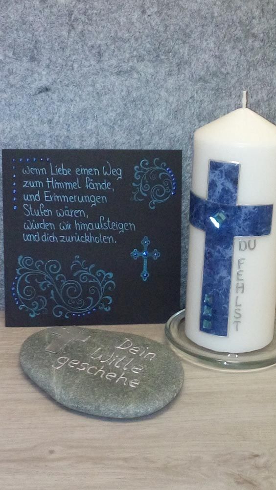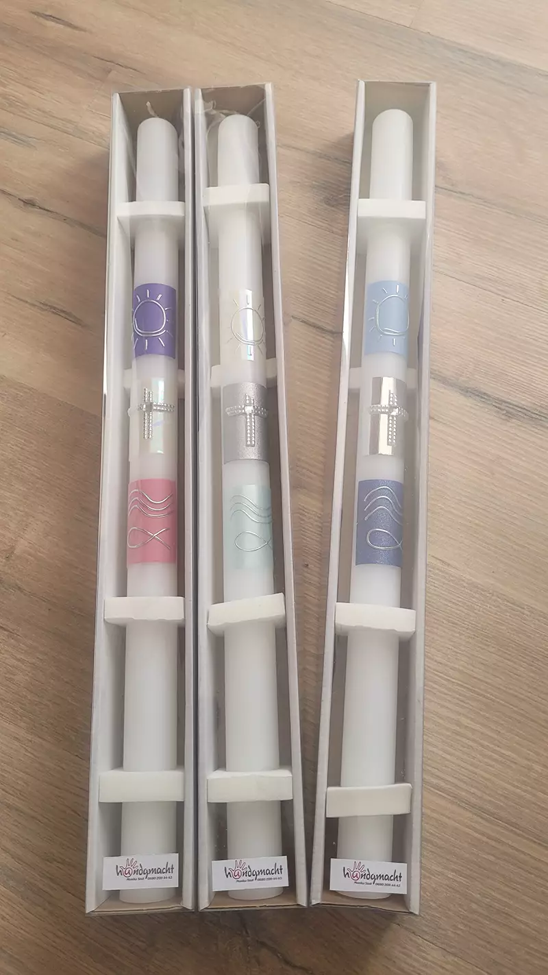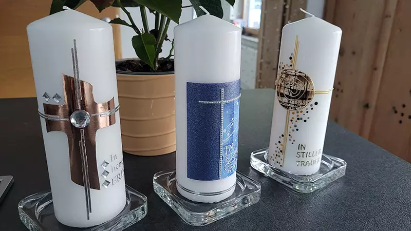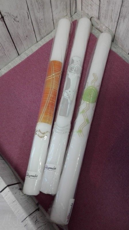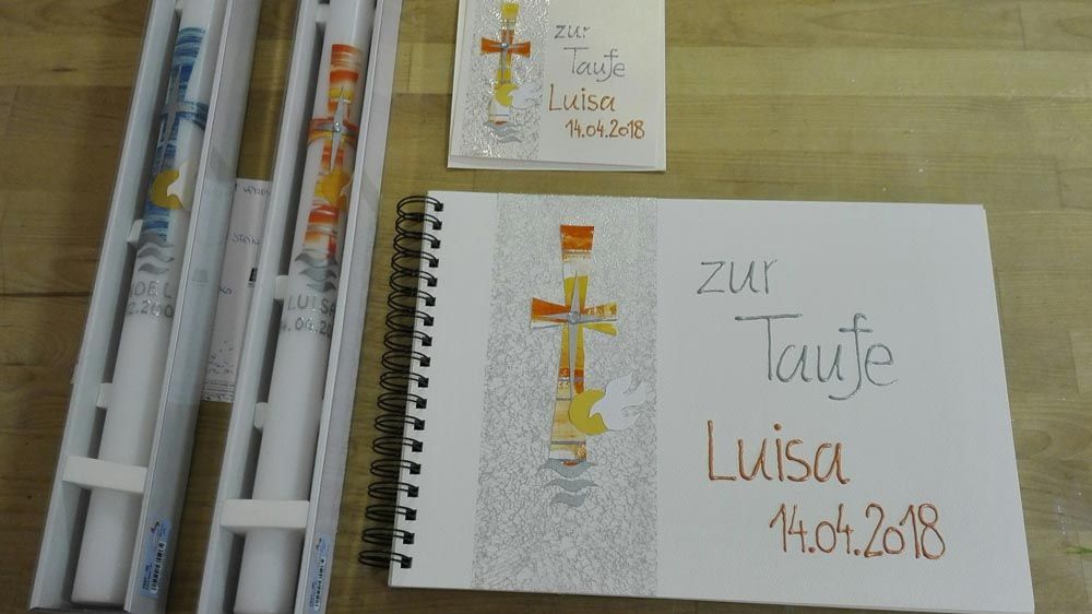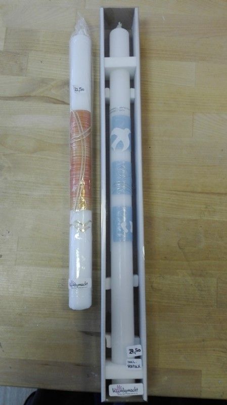 Taufkerzen habe ich immer lagernd. Sollten Sie die Kerze für einen anderen Anlass benötigen, bitte ich um eine kurze Vorbestellung. Auch Trauerkerzen können bei Bedarf gefertigt werden. So halten Sie eine bleibende Erinnerung nach Ihrem ganz persönlichen Geschmack in Ihren Händen.