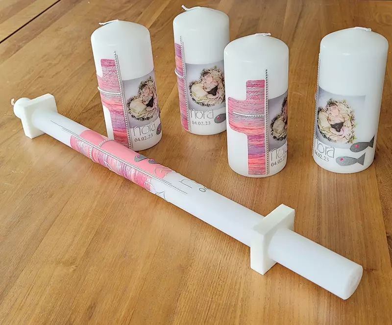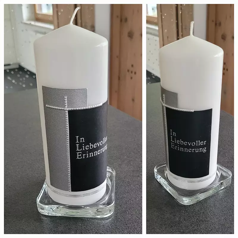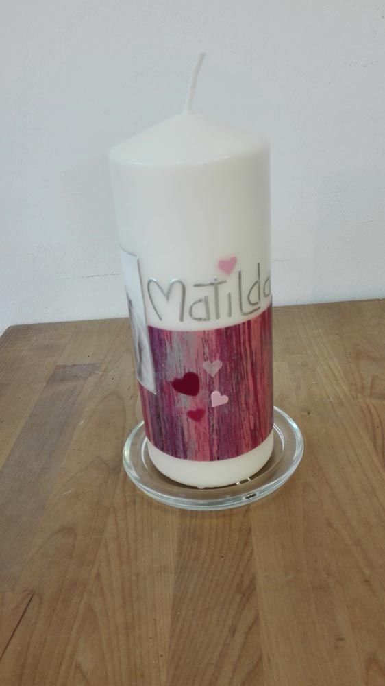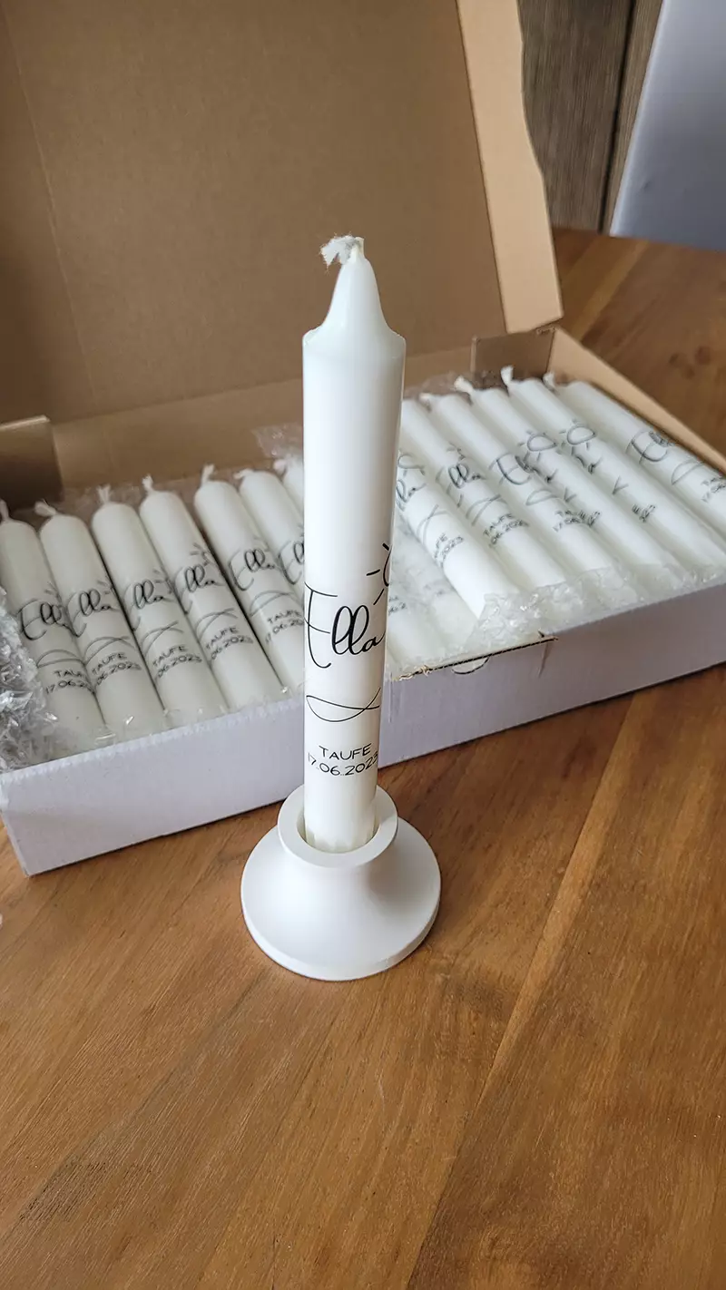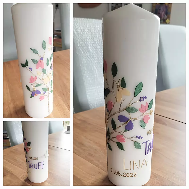 Taufkerzen habe ich immer lagernd. Sollten Sie die Kerze für einen anderen Anlass benötigen, bitte ich um eine kurze Vorbestellung. Auch Trauerkerzen können bei Bedarf gefertigt werden. So halten Sie eine bleibende Erinnerung nach Ihrem ganz persönlichen Geschmack in Ihren Händen.