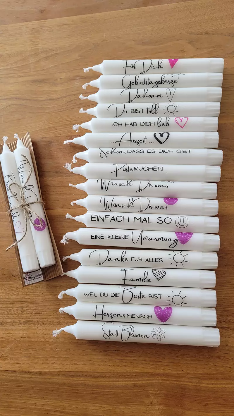 Kerzen spenden Wärme und Licht und sorgen für eine stimmungsvolle Atmosphäre. Mit einer passenden Verzierung eignen sie sich aber auch bestens für verschiedene festliche Anlässe. Bei Handgmacht können Sie aus unterschiedlichen Modellen wählen oder selbst eine Verzierung in Auftrag geben.